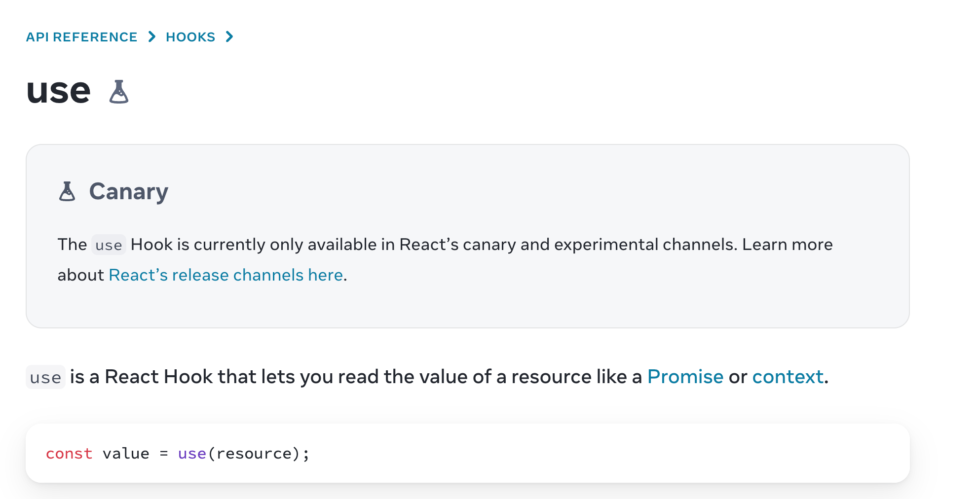 [use 훅에 대한 리액트 공식문서 설명]