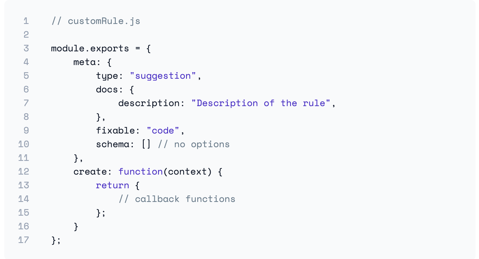 problem, suggestion, layout으로 구분되어 실제로 문제가 될 수 있는지를 나타낼 수 있다. - docs에는 해당 에러가 발생했을 때 어떻게 안내할 지를 담는 부분으로 추가된 룰에 대한 설명을 담을 수 있다.